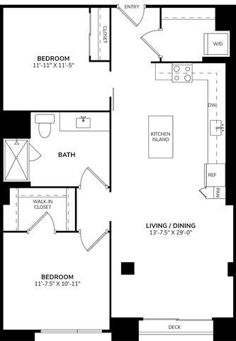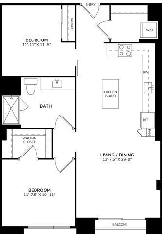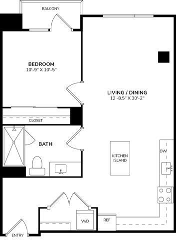 Modelo de apartamento: A51 Dormitorio, 1 Baño, 744 sq ftDisponible Ahora![]()