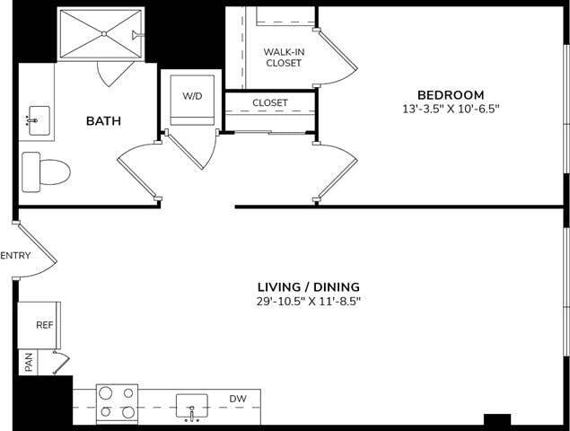 A8b - Plano 1 Unidad de apartamento: 629Modelo de apartamento: A8b1 Dormitorio, 1 Baño, 810 sq ftDisponible AhoraPlano: A8h