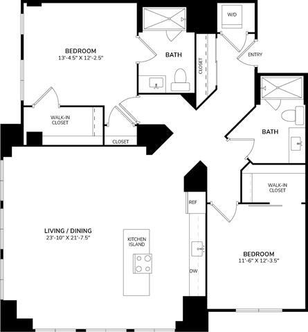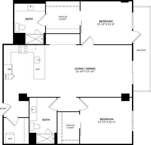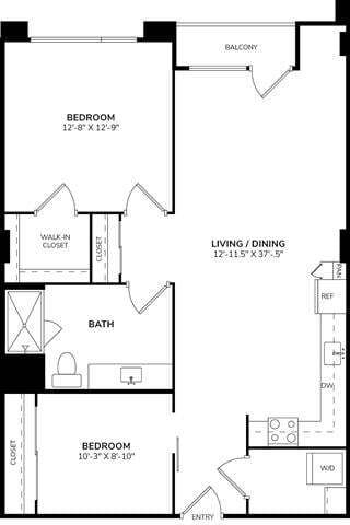Modelo de apartamento: A8b1 Dormitorio, 1 Baño, 810 sq ftDisponible Ahora![]()