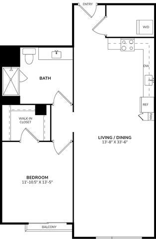 A3 - Plano 1 Unidad de apartamento: 436Modelo de apartamento: A31 Dormitorio, 1 Baño, 711 sq ftDisponible January 10, 2026Plano: A1