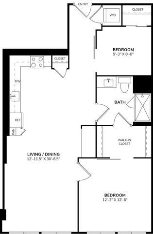 1 Dormitorio, 1 Baño, 741 pies²Galería del Modelo