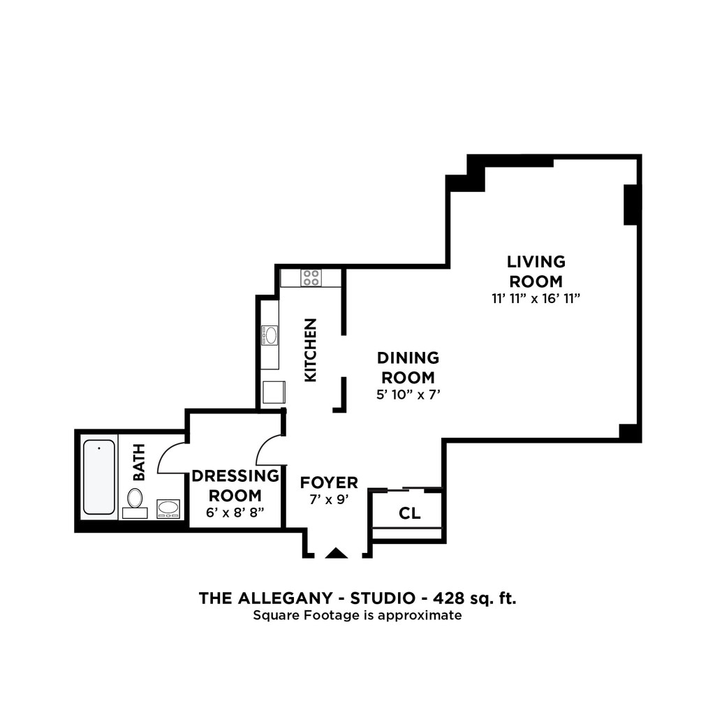 Estudio, 1 Baño, 412-463 pies²Disponible AhoraGalería del Modelo