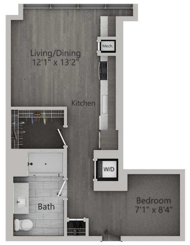 1 Dormitorio, 1 Baño, 743 pies²Disponible AhoraGalería del Modelo