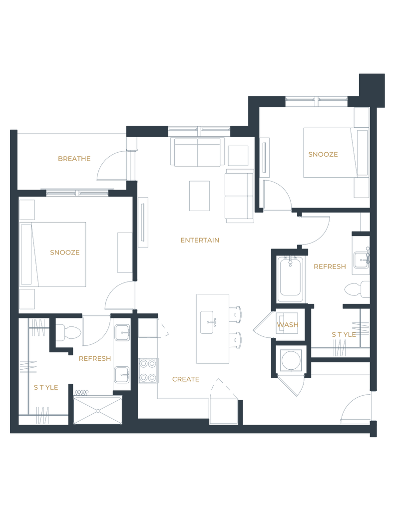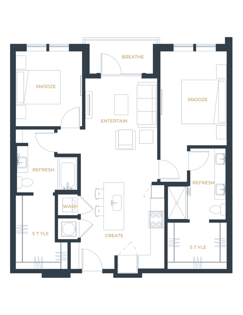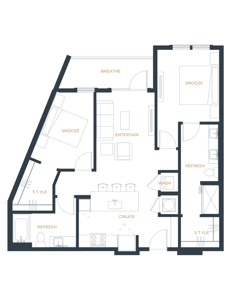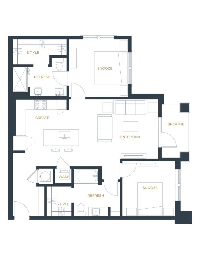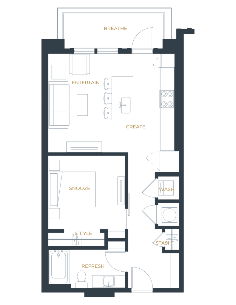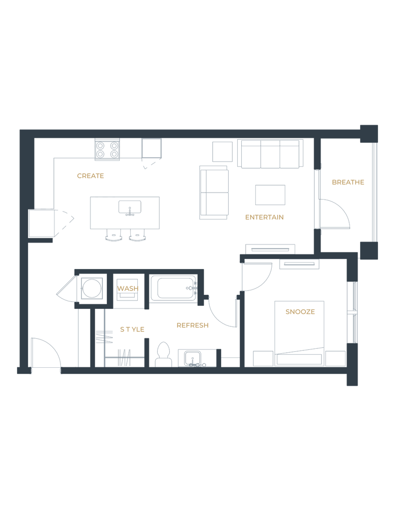 1 Dormitorio, 1 Baño, 768 pies²Disponible AhoraGalería del Modelo