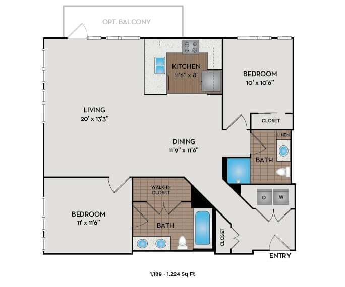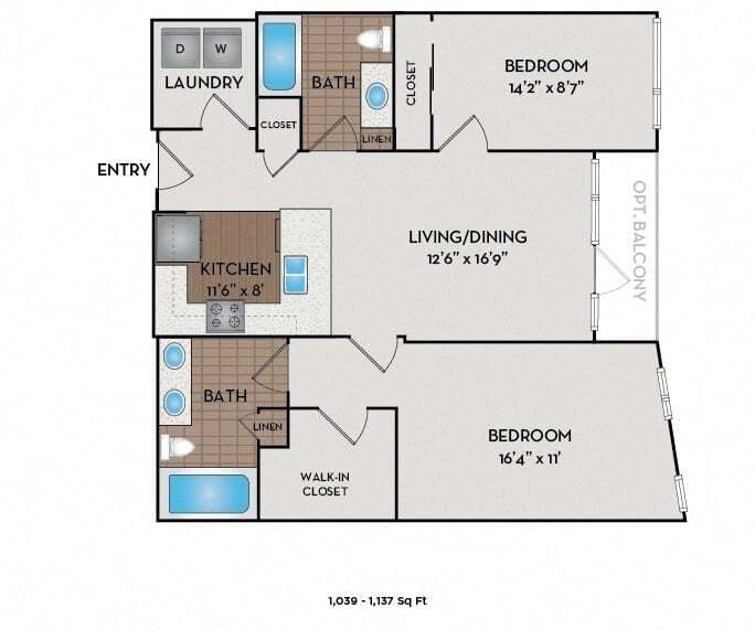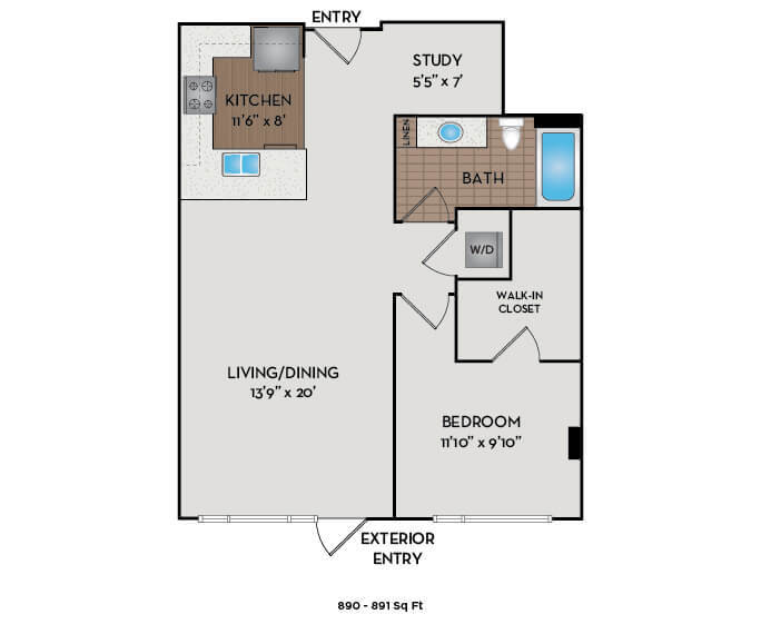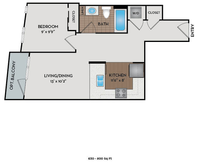 Estudio, 1 Baño, 521-641 pies²Disponible AhoraGalería del Modelo