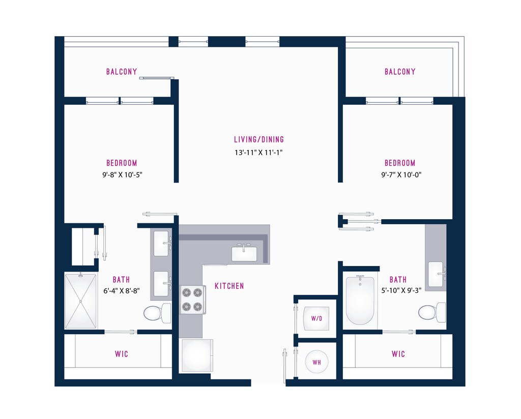 Modelo de apartamento: A1CDesde $1,4471 Dormitorio, 1 Baño, 640 sq ftDisponible Ahora![]()