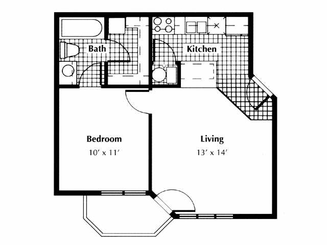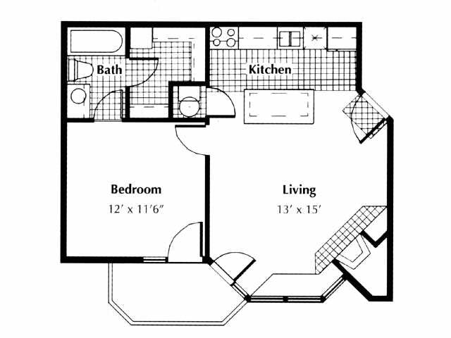 Modelo de apartamento: SunsetDesde $1,1981 Dormitorio, 1 Baño, 580 sq ftDisponible Ahora![]()