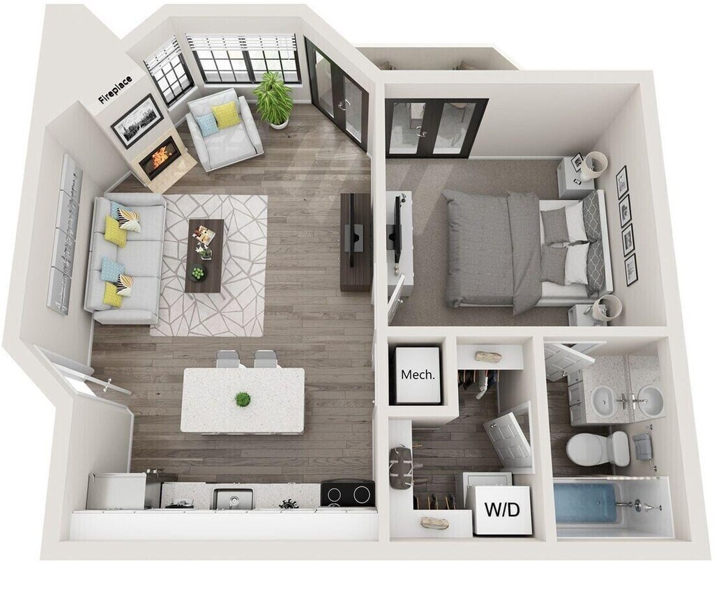 1 Dormitorio, 1 Baño, 580 pies²Disponible AhoraGalería del Modelo