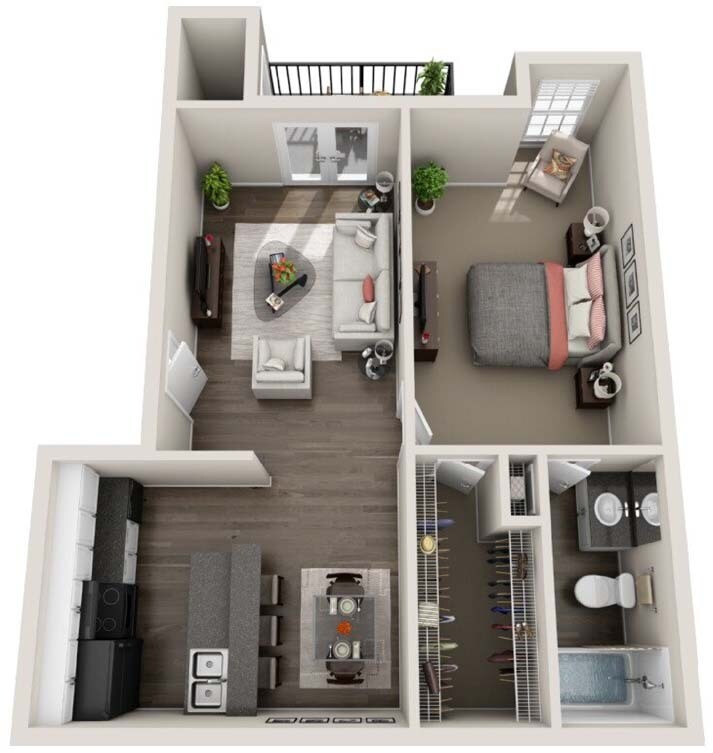 1 Dormitorio, 1 Baño, 728 pies²Disponible AhoraGalería del Modelo