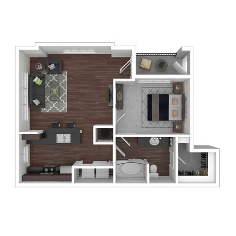 Modelo de apartamento: A1Desde $1,1351 Dormitorio, 1 Baño, 644 sq ftDisponible Ahora![]()