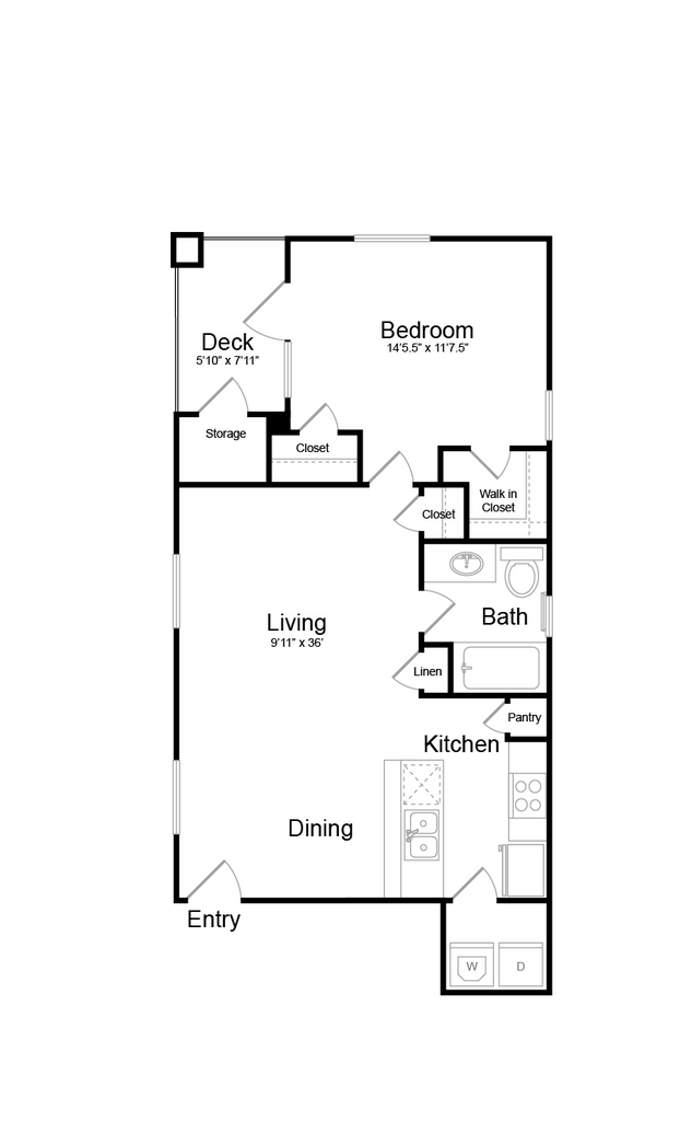 1 Dormitorio, 1 Baño, 745 pies²Disponible AhoraGalería del Modelo