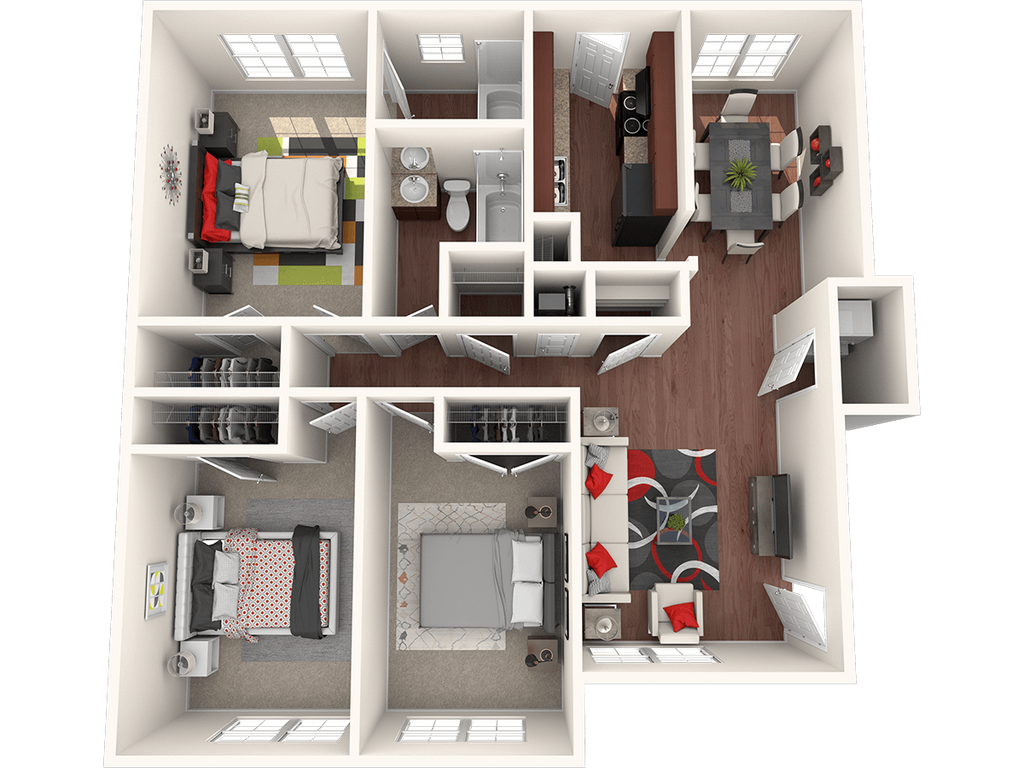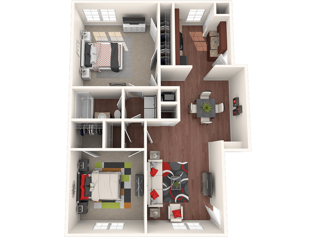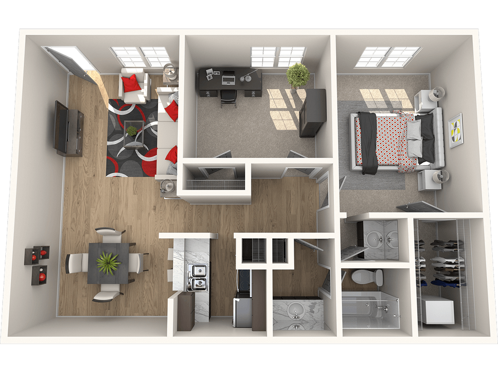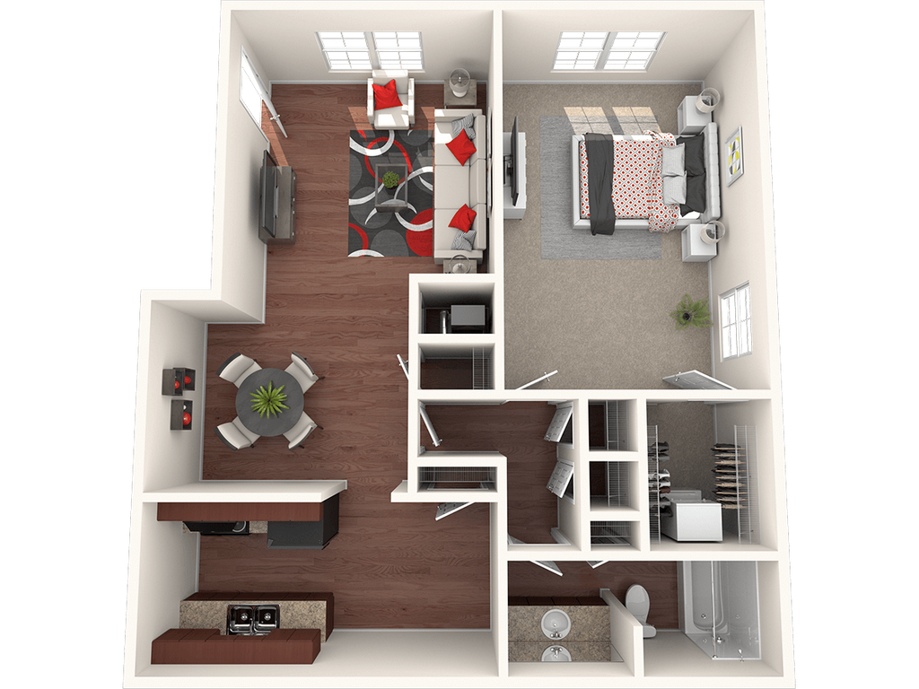 1 Dormitorio, 1 Baño, 900-950 pies²Disponible AhoraEl más grandeEsta opción tiene las unidades más grandes para este modeloGalería del Modelo