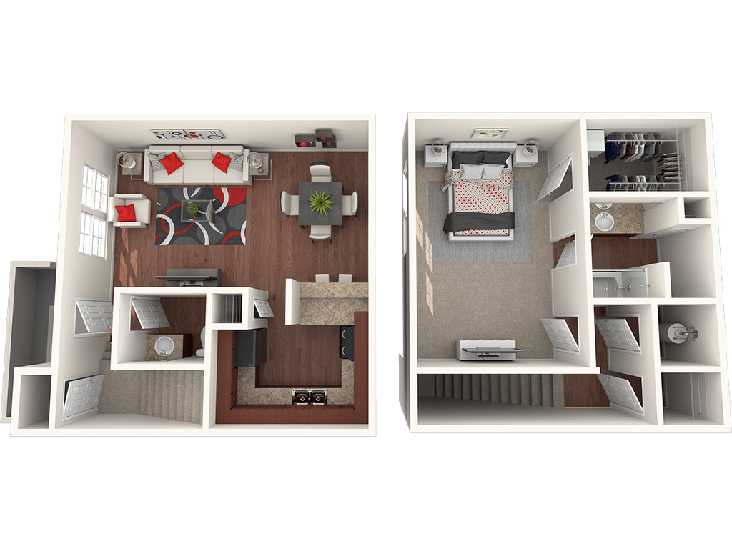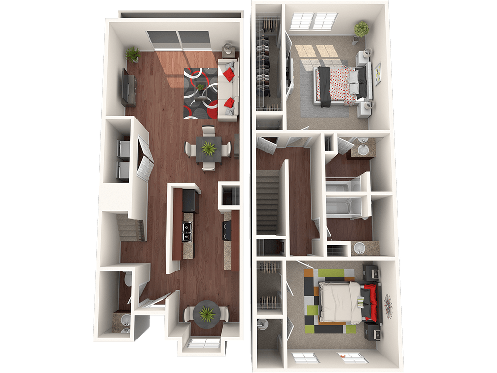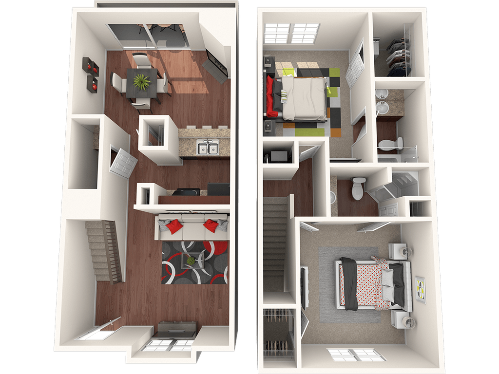 Modelo de apartamento: Townhome - 1 Bedroom & 1.5 Bathrooms$1,0851 Dormitorio, 1.5 Baños, 771 sq ftDisponible Ahora![]()