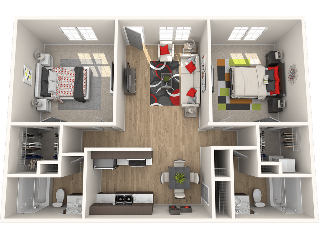 2 Dormitorios, 2 Baños, 972 pies²Disponible AhoraGalería del Modelo