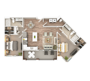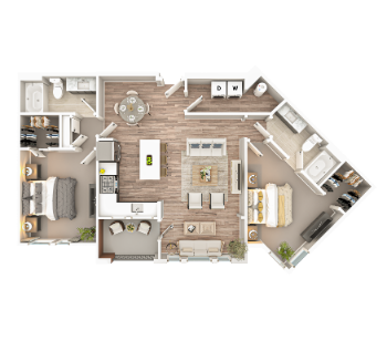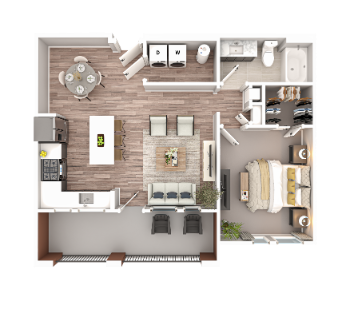 1 Dormitorio, 1 Baño, 829 pies²Disponible AhoraGalería del Modelo