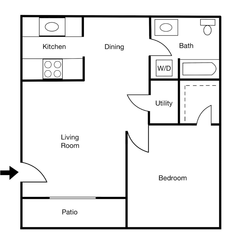 1 Dormitorio, 1 Baño, 640 pies²Disponible Oct 15Galería del Modelo