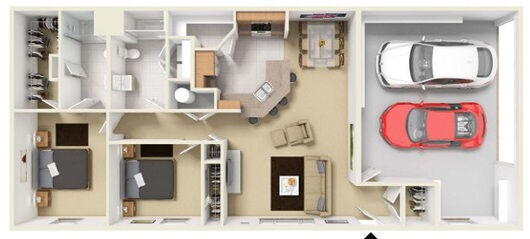 2 Dormitorios, 2 Baños, 960 pies²Galería del Modelo