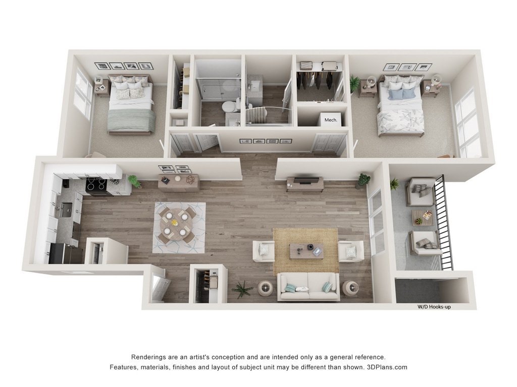 Modelo de apartamento: 2 BedroomLlame para Precios2 Dormitorios, 2 Baños, 1137 sq ftNo Disponible![]()
