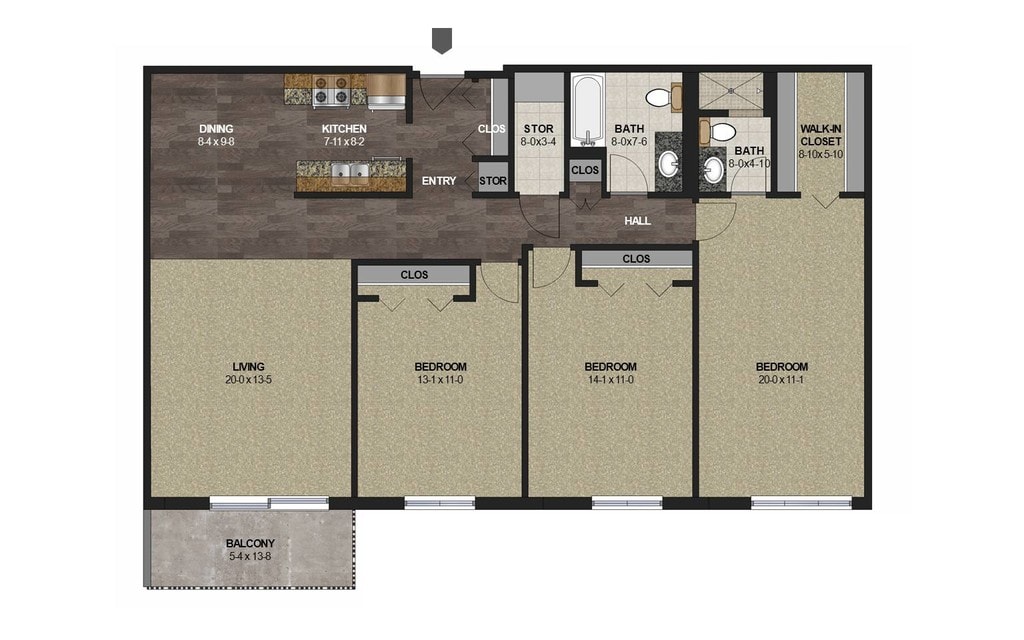 Modelo de apartamento: 3B/2BDesde $1,9303 Dormitorios, 2 Baños, 1392 sq ftNo Disponible3B/2B - Plano 1