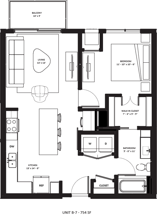 1 Dormitorio, 1 Baño, 754 pies²Más CargosDisponible AhoraGalería del Modelo