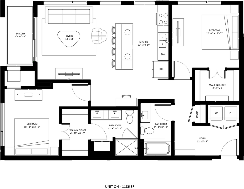 Modelo de apartamento: B7Desde $1,8611 Dormitorio, 1 Baño, 754 sq ftDisponible Ahora![]()