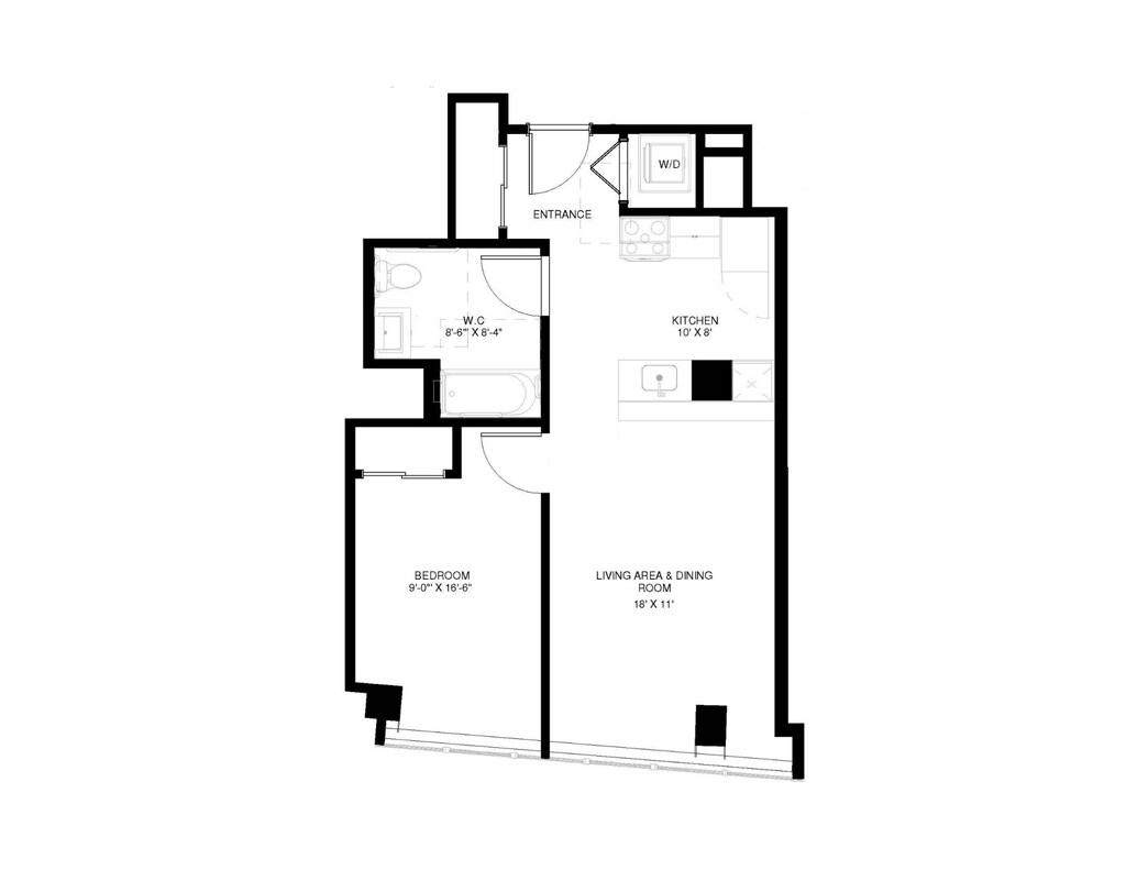 1 Dormitorio, 1 Baño, 810-811 pies²Disponible AhoraGalería del Modelo