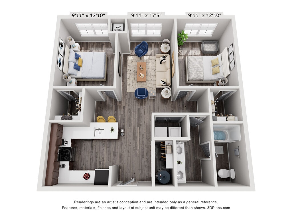 2 Dormitorios, 1 Baño, 938 pies²Disponible AhoraGalería del Modelo