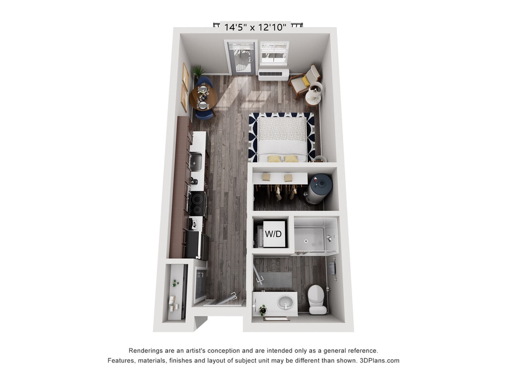 Estudio, 1 Baño, 400 pies²Disponible Oct 22Galería del Modelo