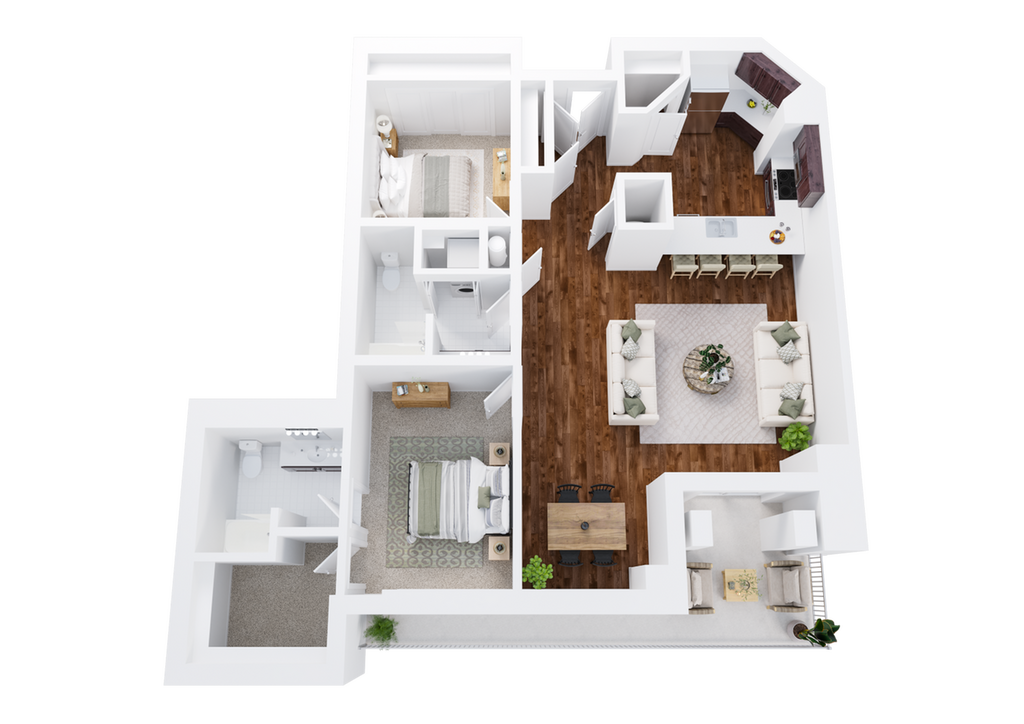2 Dormitorios, 1 Baño, 838-1030 pies²Disponible AhoraGalería del Modelo