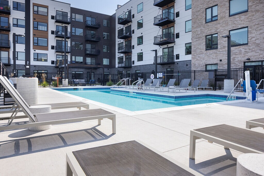 The Meridian is now open and accepting applications. Nestled in the Gray's Landing neighborhood, our meticulously crafted community is tailored to elevate your lifestyle with the ideal canvas for your urban oasis. Experience a synthesis of downtown energy and connection, while enjoying the tranquility of the Gray's Landing landscape. The Meridian presents an expansive array of flexible living arrangements tailored to suit your lifestyle. We offer you a unique menu of thoughtful layouts including studios, alcoves, and one- or two-bedroom residences, with the added allure of select dens. Each meticulously crafted space ensures that you have a sanctuary to seamlessly navigate your schedule with unrivaled refinement and comfort. At The Meridian, every aspect of your home has been designed to elevate your daily routine. Retreat and unwind in the sauna or indulge in your creative side in the Maker's Space. Elevate your fitness journey within our state-of-the-art fitness center and group fitness rooms, equipped with cutting-edge facilities and amenities to optimize your workout regimen. Enhance your hosting experience by inviting guests to indulge in the luxurious amenity spaces, such as our lounge designed for entertaining and sophisticated rooftop bar, where breathtaking views of the picturesque downtown skyline await. Elevate your gatherings to new heights amidst unparalleled elegance and stunning scenery. Take your remote work experience to new heights with a diverse selection of options including private rooms, booths, tables, and comfortable seating, throughout the community, empowering you to maintain productivity while enjoying the freedom to transition seamlessly between inspiring environments. Renderings are artistic representations that are subject to change.