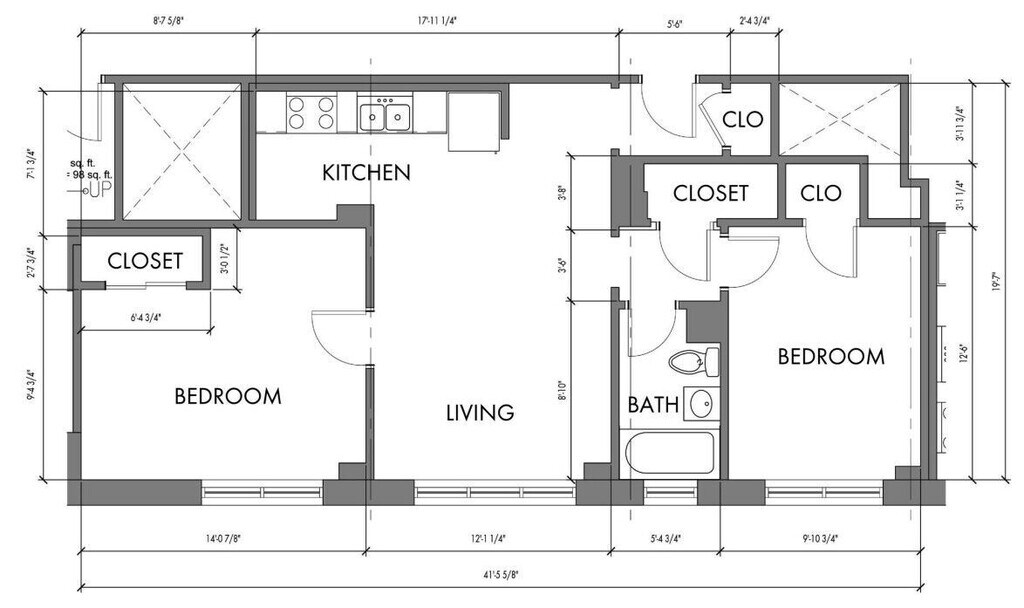 2 Dormitorios, 1 Baño, 727 pies²Disponible AhoraGalería del Modelo