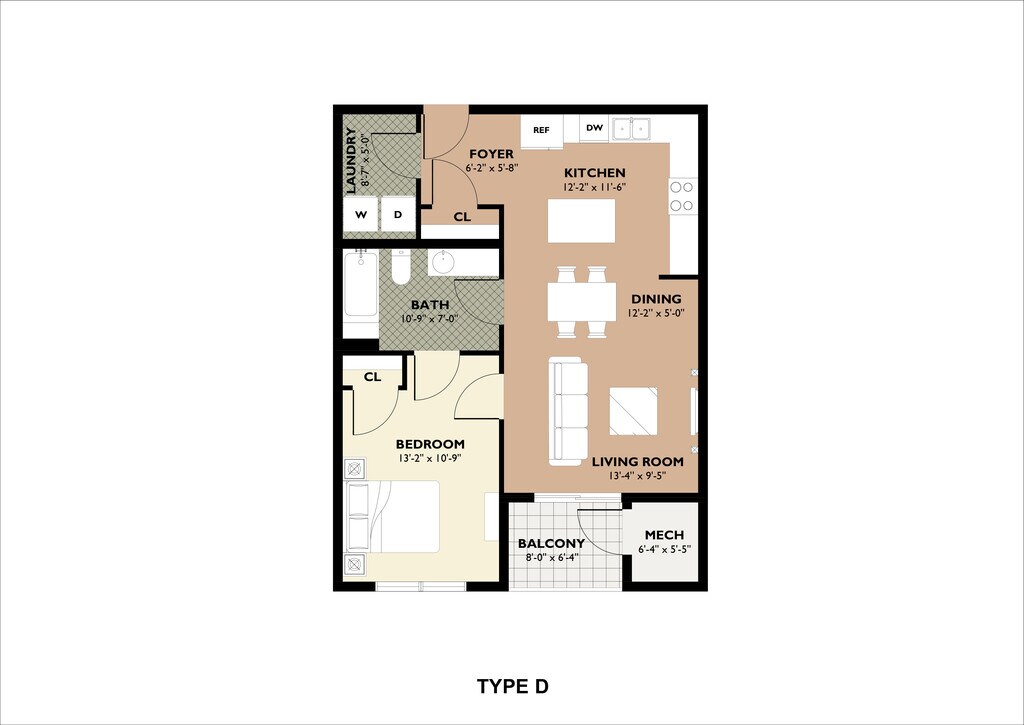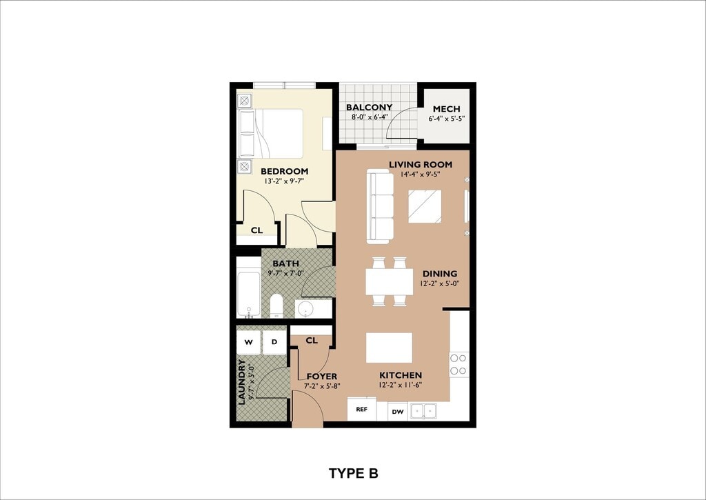 Modelo de apartamento: D$2,3701 Dormitorio, 1 Baño, 819 sq ftDisponible AhoraD - Plano 1 Unidad de apartamento: U102Modelo de apartamento: D$2,3701 Dormitorio, 1 Baño, 819 sq ftDisponible AhoraPlano: B