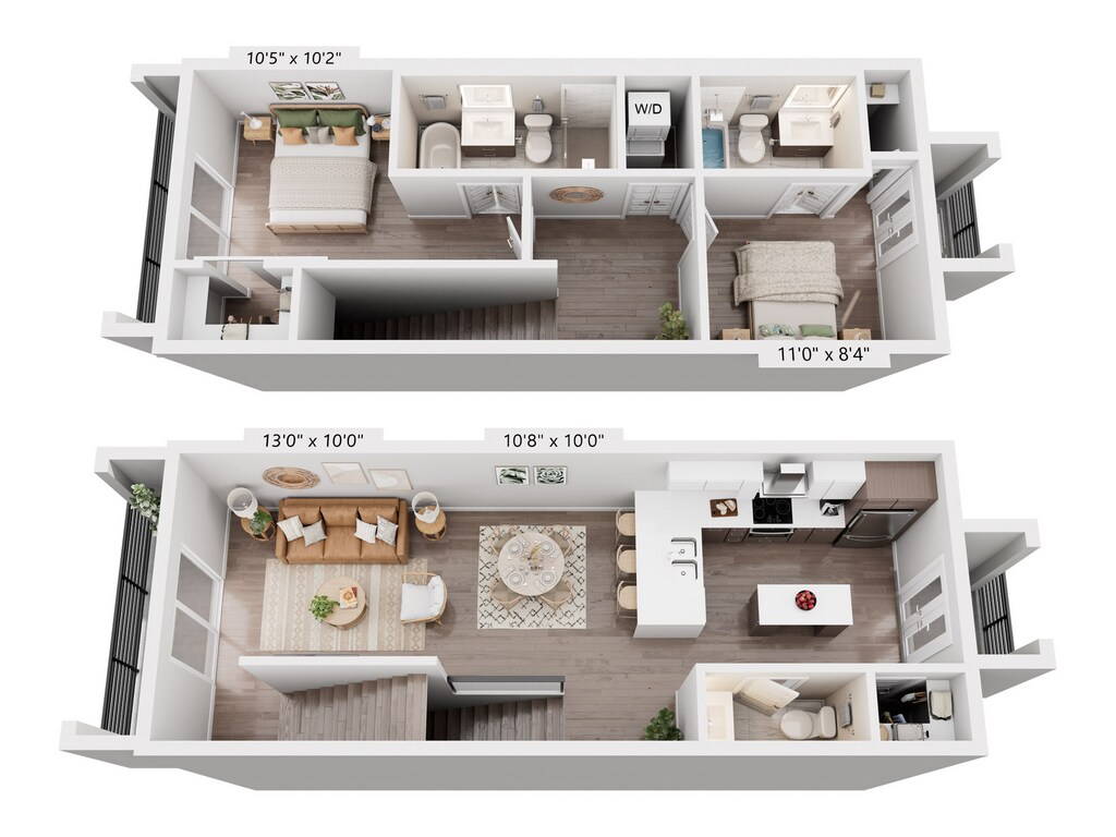 2 Dormitorios, 2.5 Baños, 1200 pies²Disponible AhoraGalería del Modelo