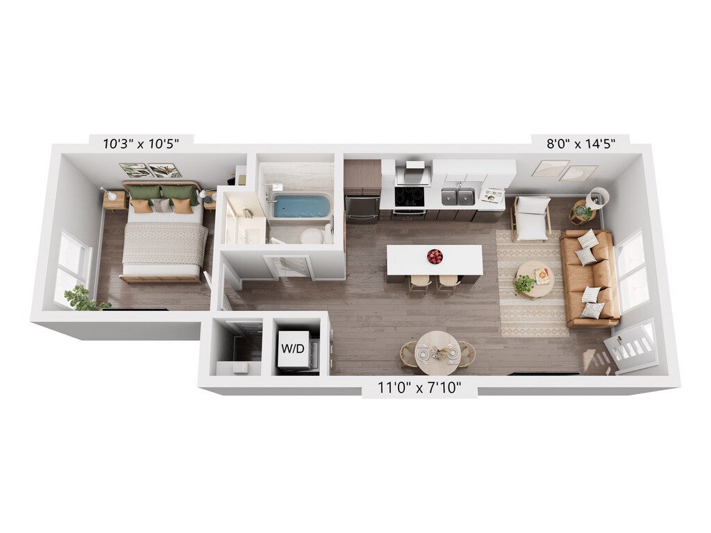 1 Dormitorio, 1 Baño, 600 pies²Disponible AhoraGalería del Modelo