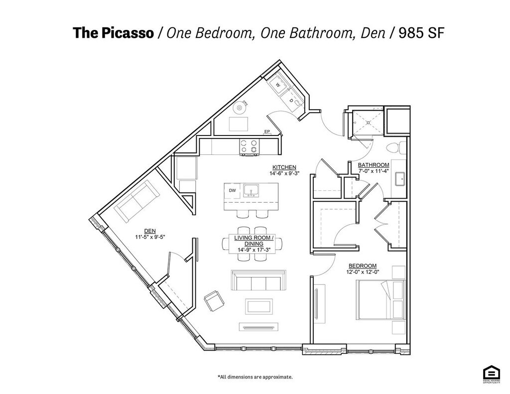 1 Dormitorio, 1 Baño, 814 pies²Galería del Modelo