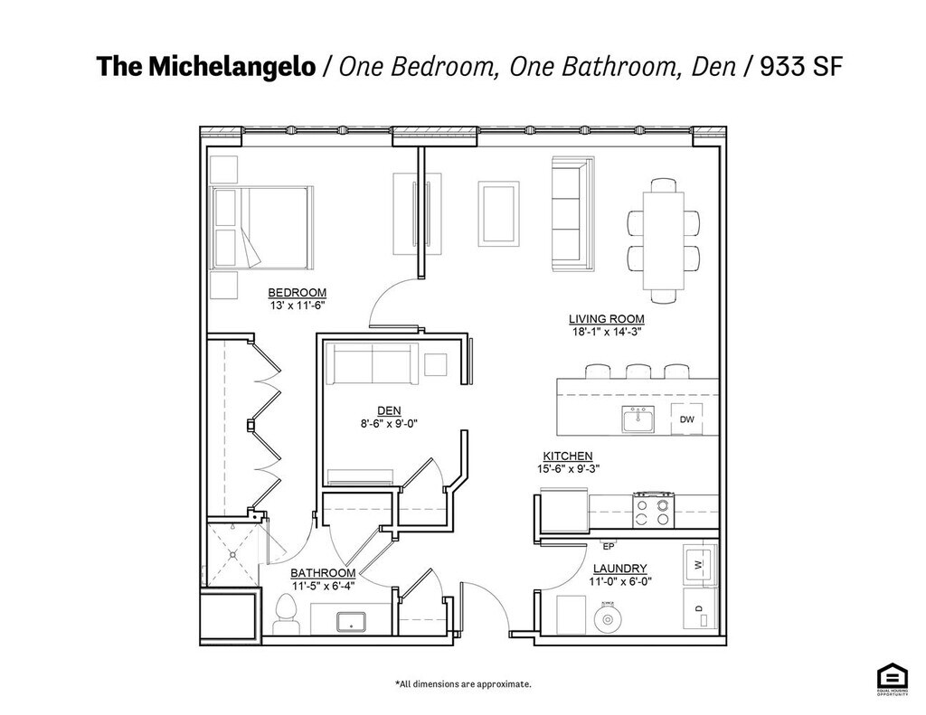 1 Dormitorio, 1 Baño, 822 pies²Galería del Modelo