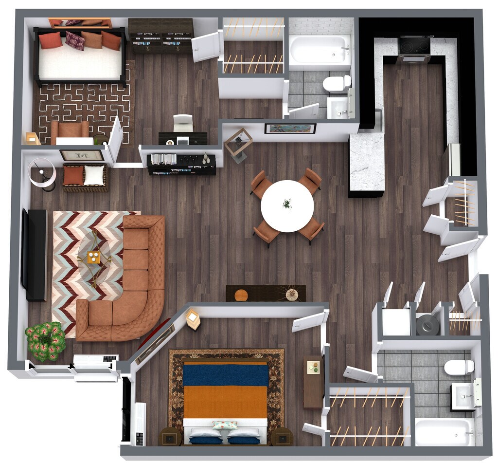 Modelo de apartamento: 1 Bedroom CornerDesde $1,3951 Dormitorio, 1 Baño, 670 sq ftDisponible Ahora![]()