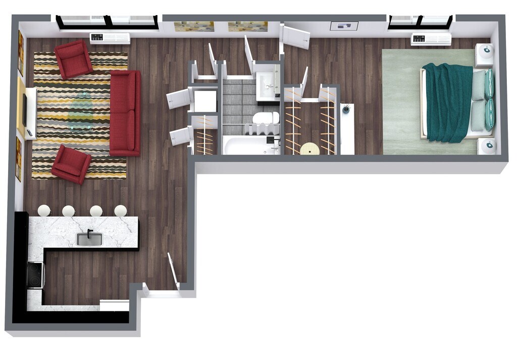 Unidad: 201 - Imagen 8 Unidad de apartamento: 212Modelo de apartamento: 1 Bedroom Corner$1,4501 Dormitorio, 1 Baño, 670 sq ftDisponible Ahora![]()
