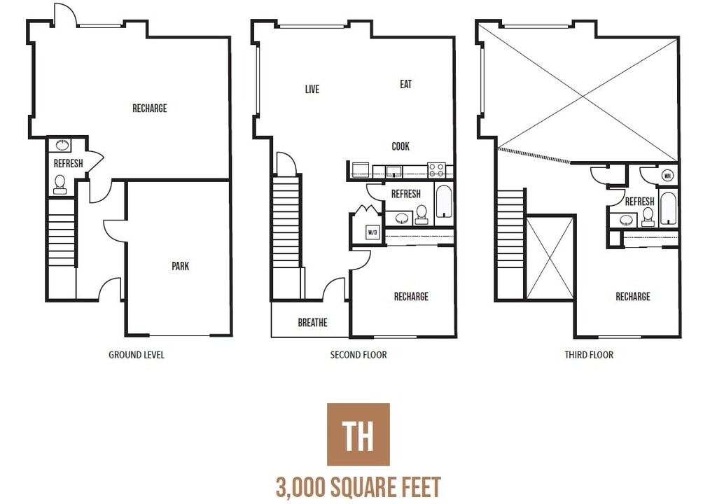 Three Bedroom - Plano 1 Unidad de apartamento: 1740Modelo de apartamento: Three Bedroom$3,2953 Dormitorios, 2.5 Baños, 3000 sq ftDisponible Ahora
