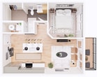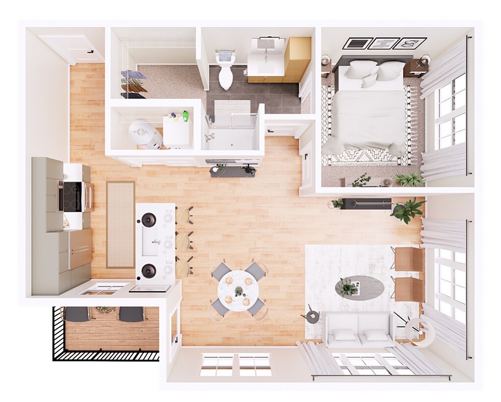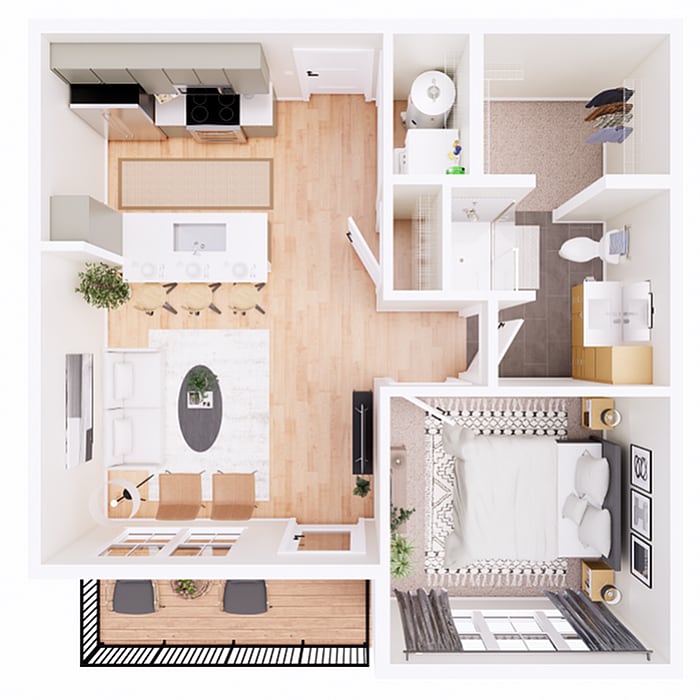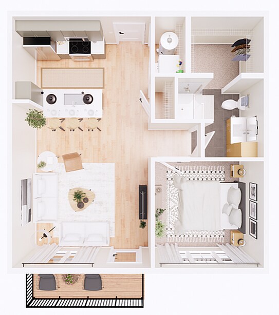 1 Dormitorio, 1 Baño, 614 pies²Disponible Jun 16Galería del Modelo