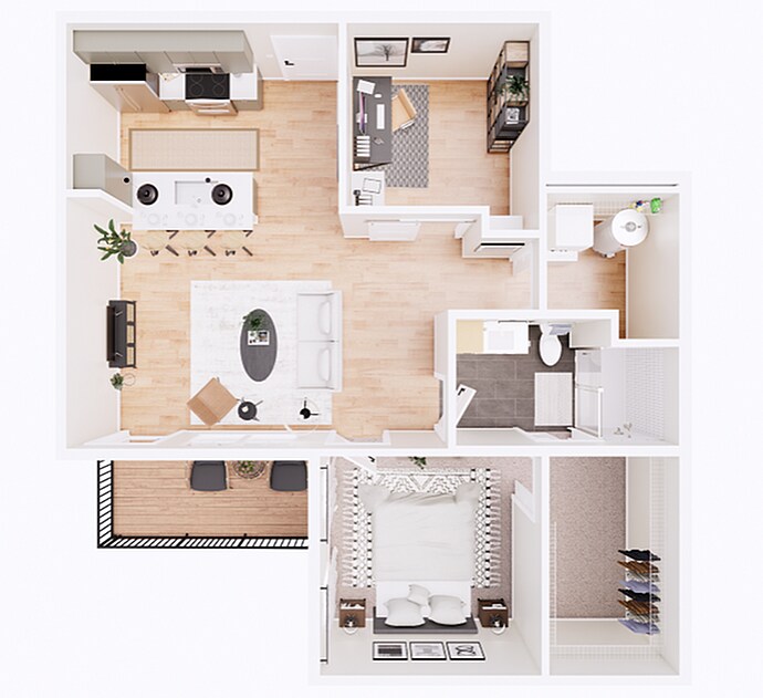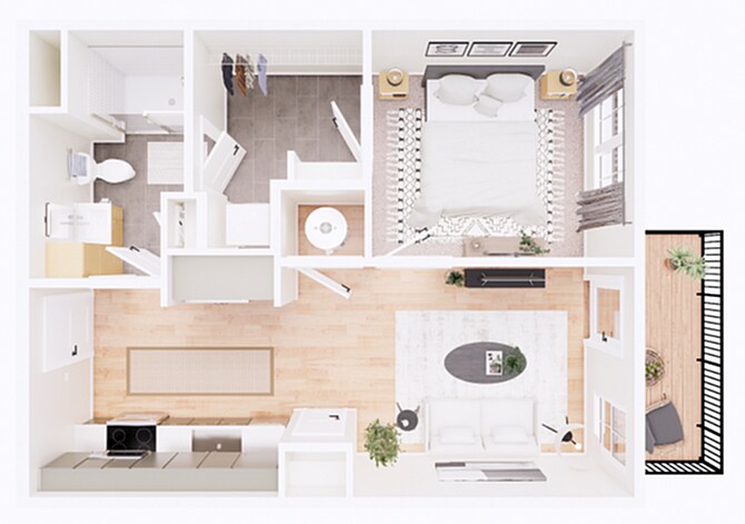 1 Dormitorio, 1 Baño, 809 pies²Disponible Jun 2Galería del Modelo