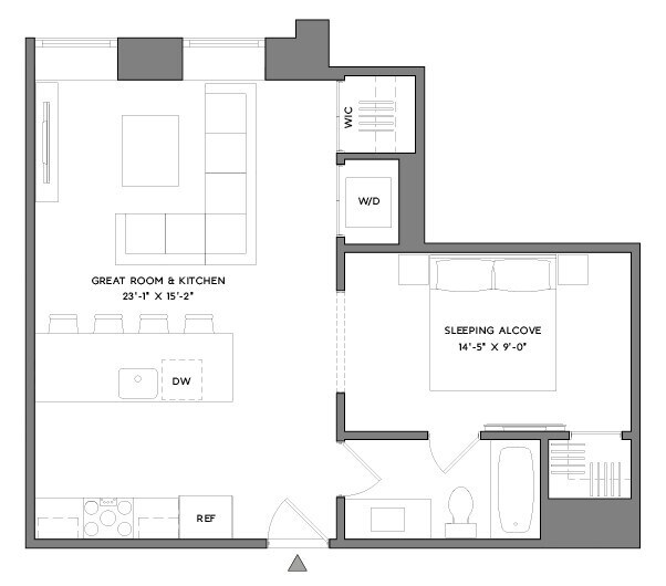 Estudio, 1 Baño, 654 pies²Galería del Modelo
