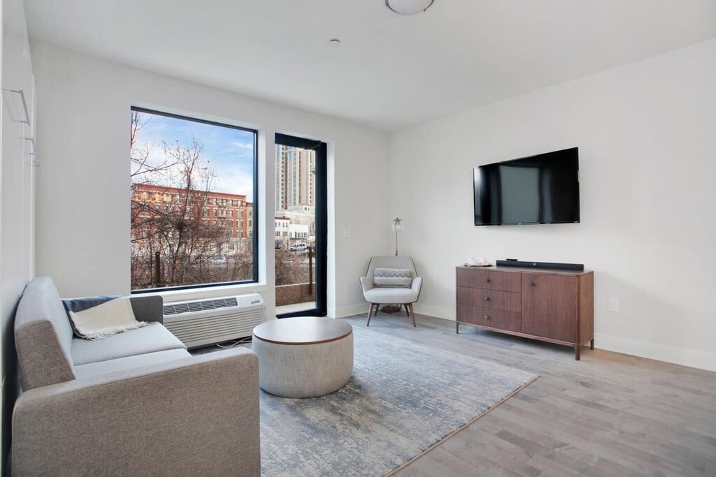 December 5, 2022Great location, 4 min walk to the train, downtown. Amazing amenities, the best management team. The apartment is spacious, with huge terrace, it’s always clean and smells good. My dog loves to live here too, she gets treats all the time. We have roof top get togethers, the management team treats us time to time. Its really a great place to liveReseña de Apartments.com
