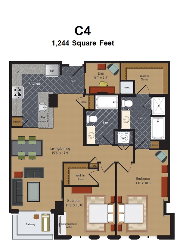 2 Dormitorios, 2 Baños, 1037-1245 pies²Disponible AhoraGalería del Modelo