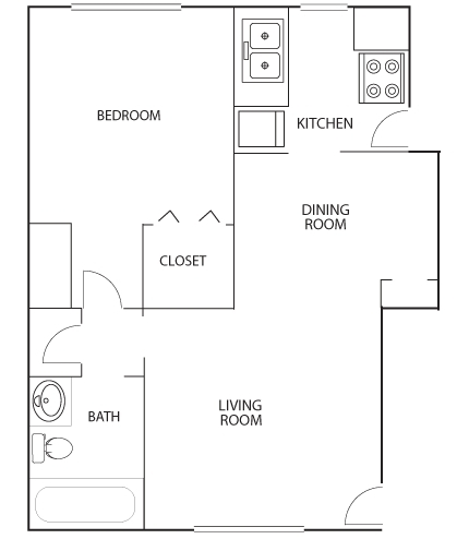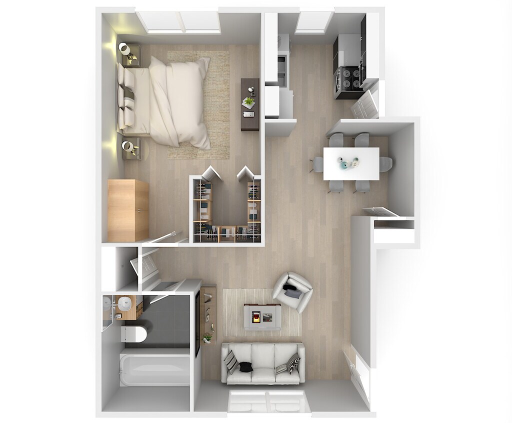 Modelo de apartamento: 41 Dormitorio, 1 Baño, 646 sq ftNo Disponible![]()