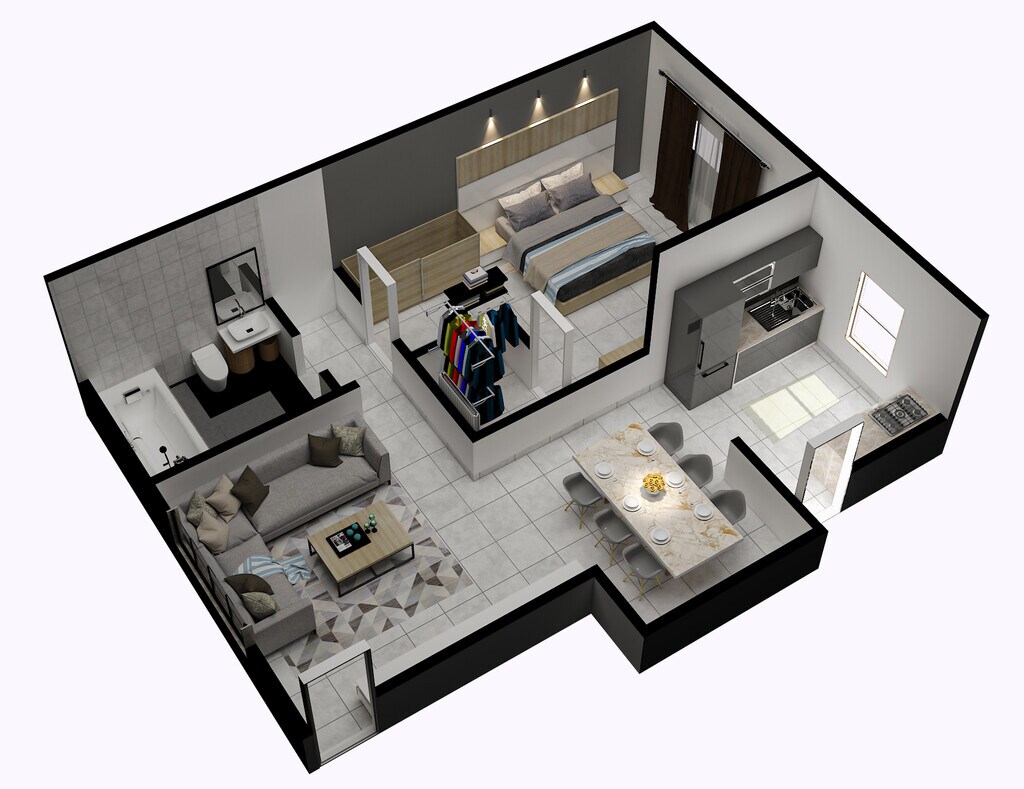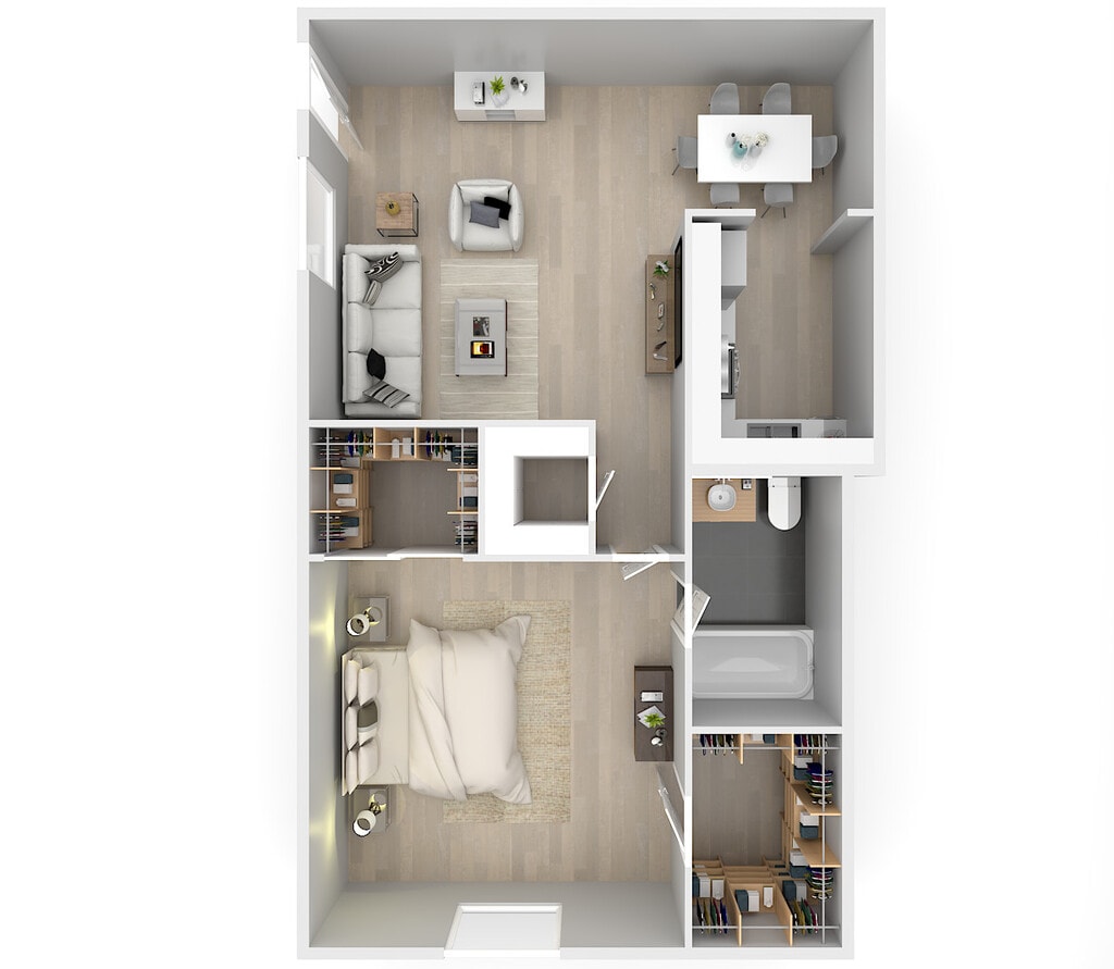 1 Dormitorio, 1 Baño, 675 pies²Galería del Modelo