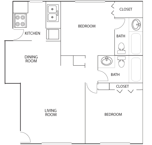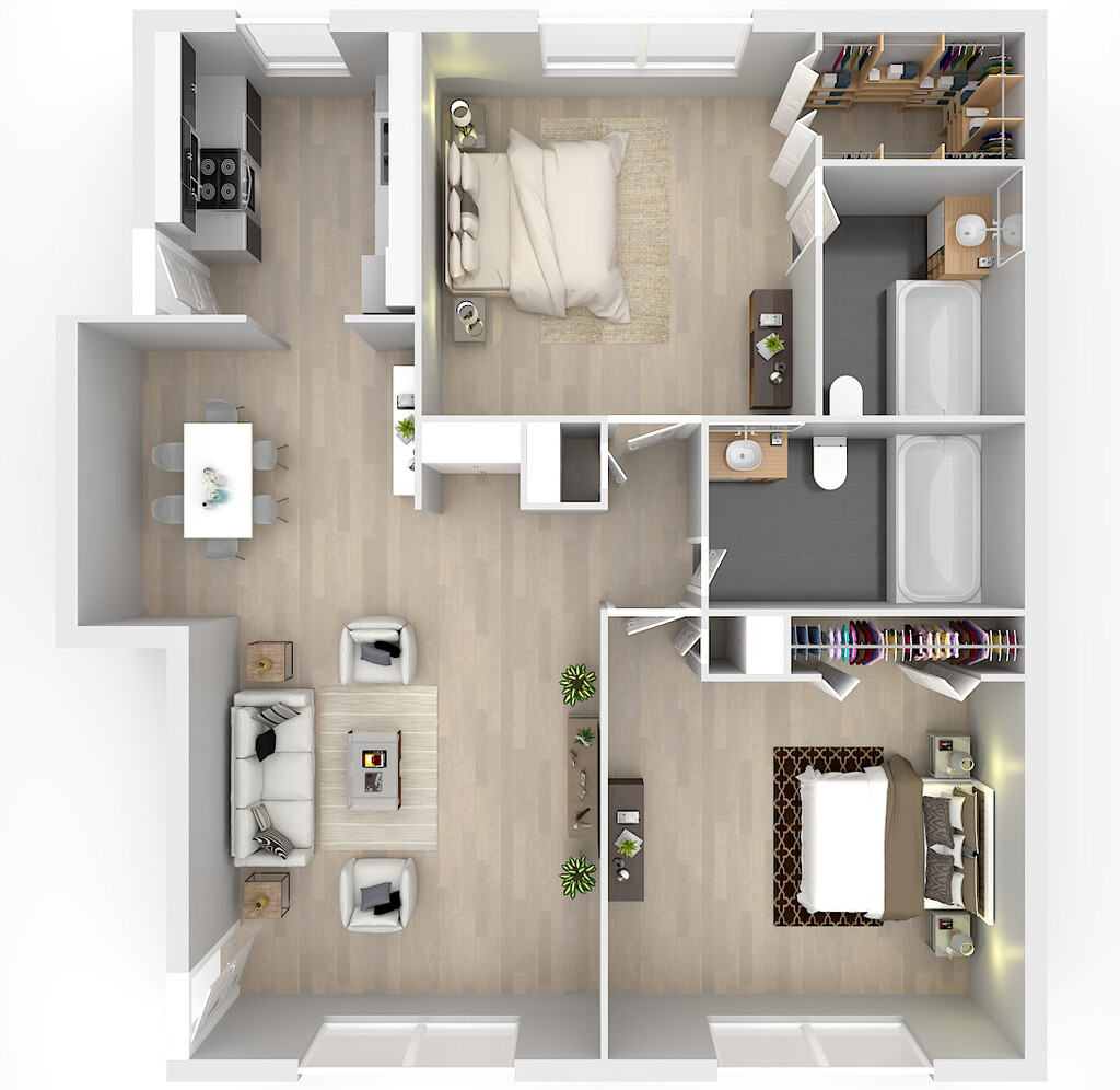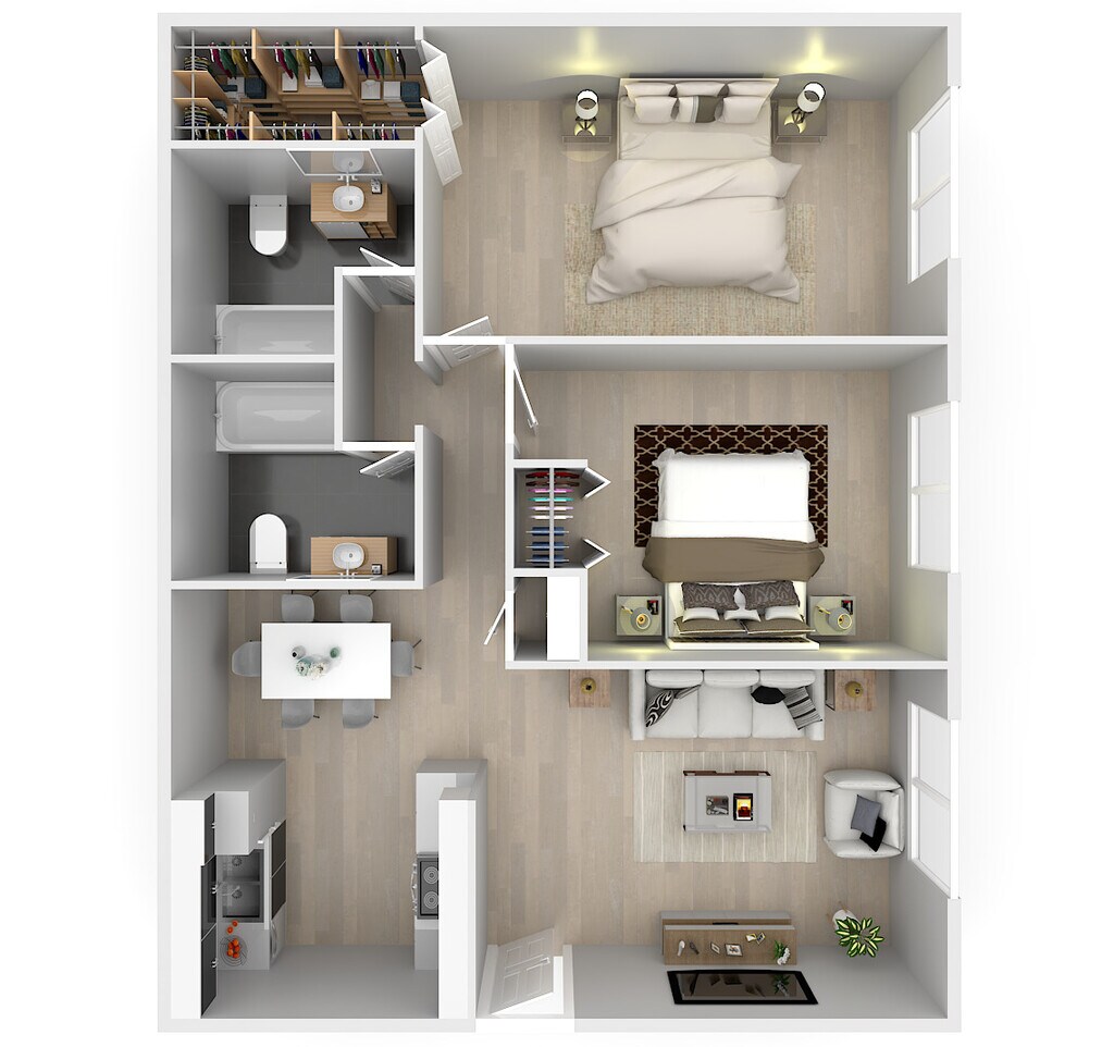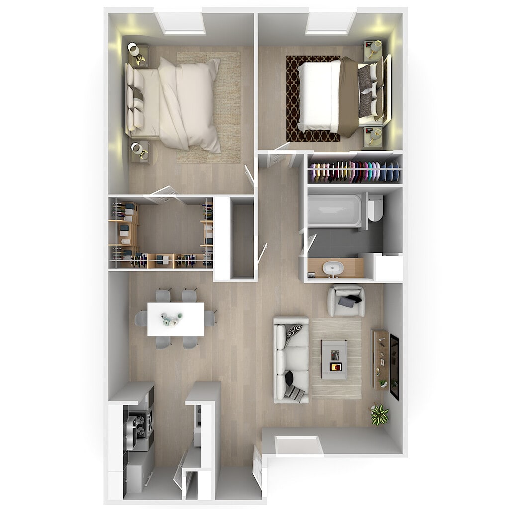 2 Dormitorios, 1 Baño, 965 pies²Galería del Modelo
