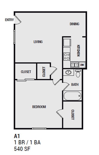 1 Dormitorio, 1 Baño, 540 pies²Detalles de Diponibilidad