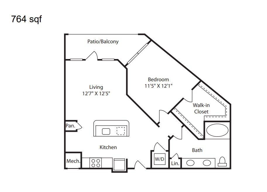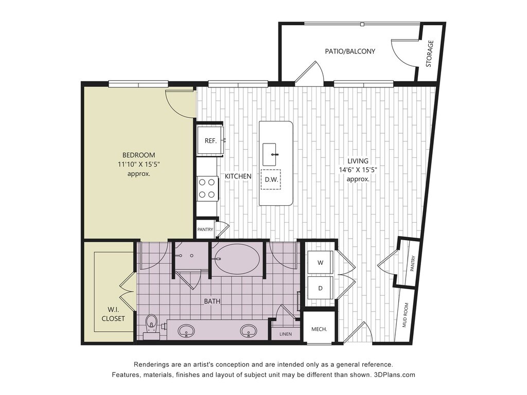 1 Dormitorio, 1 Baño, 738 pies²Disponible AhoraGalería del Modelo