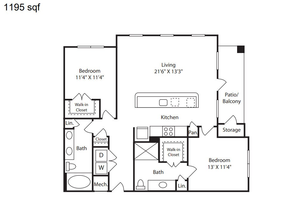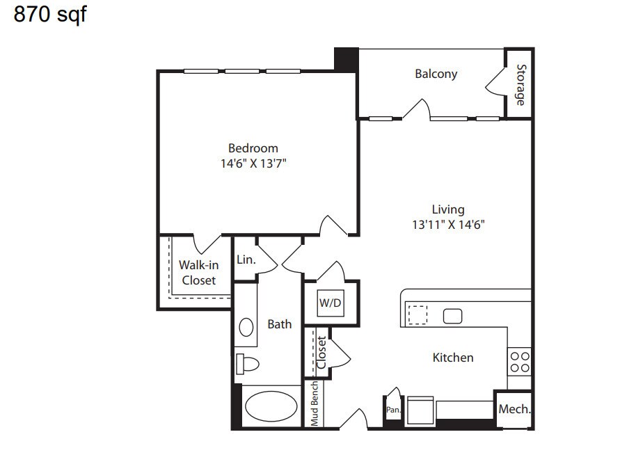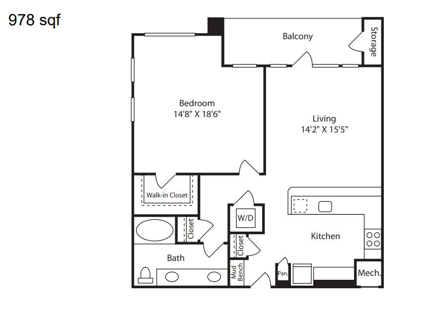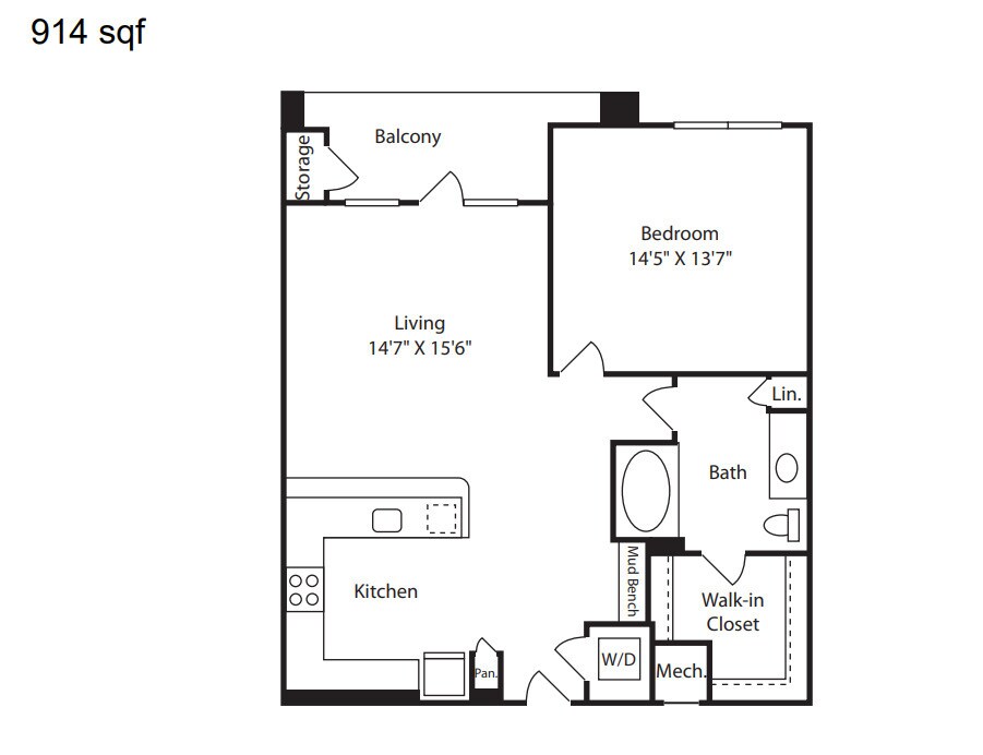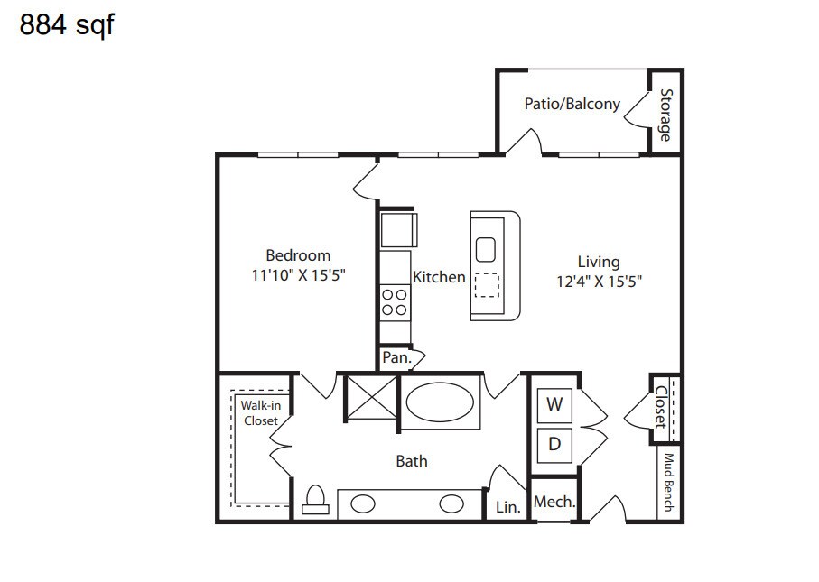 1 Dormitorio, 1 Baño, 884 pies²Disponible AhoraGalería del Modelo